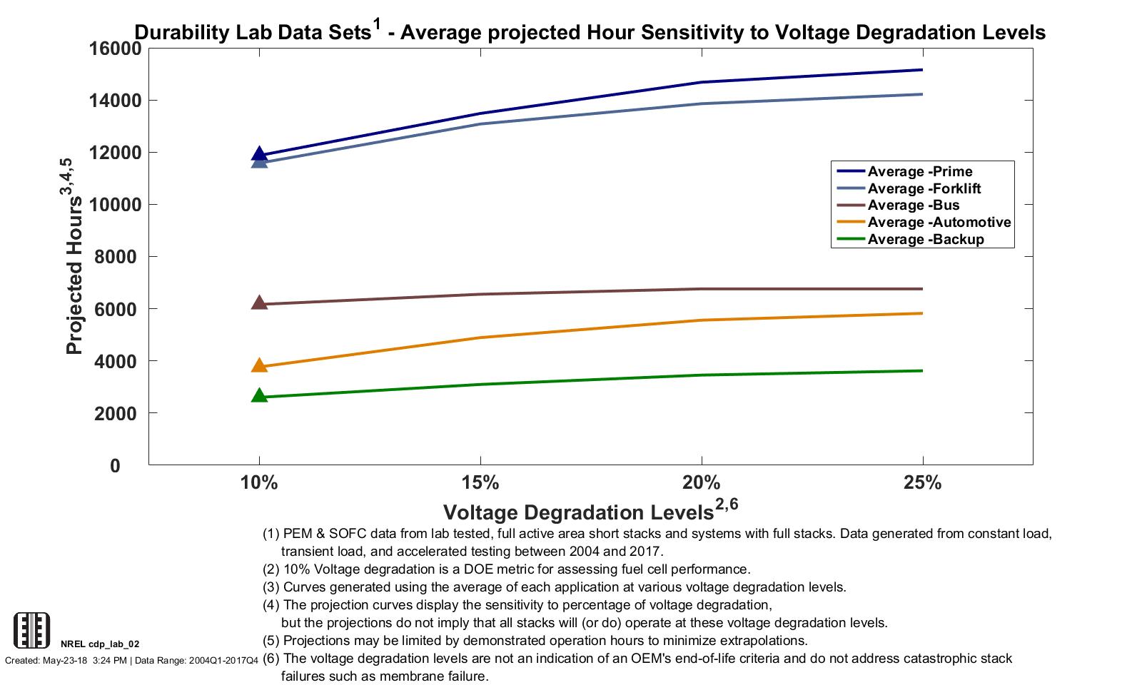 Durability Lab Data Projection Sensitivity to Voltage Degradation Levels