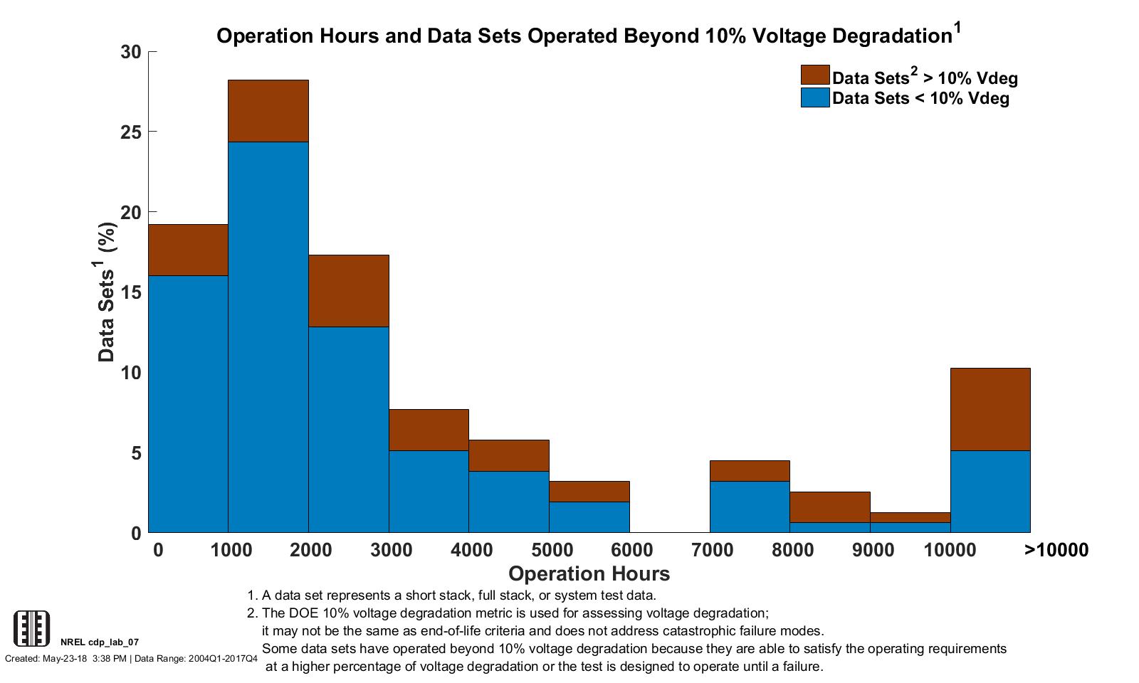 Data Set Operation Hours and Percentage of Data Sets That Have Passed 10% Voltage Degradation