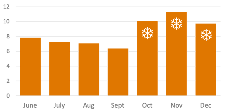 Improved gains due to partial snow cover in October, November, and December