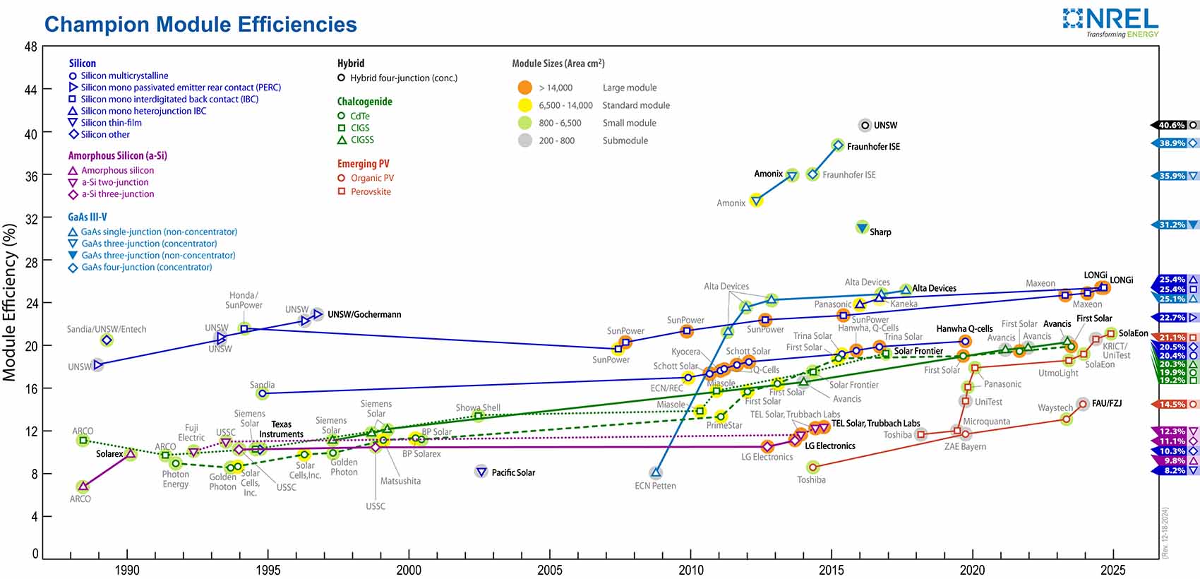 We have a long history of accurately measuring and tracking the efficiencies and performance of photovoltaic devices.